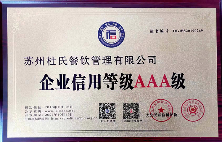 企業(yè)信用等級AAA級-杜氏餐飲